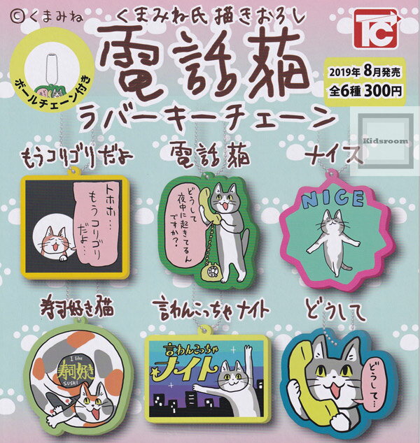 電話猫 ラバーキーチェーン 全6種+ディスプレイ台紙セット トイズキャビン ガチャポン ガチャガチャ ガシャポン