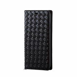 iPhoneXs Max 手帳型ケース 編み込み調 スタンド機能 通話穴 ポケット 衝撃吸収素材 ストラップリング マグネットタイプ おしゃれ 合皮 ブラック PM-A18DPLFYB1