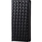 iPhoneXs Max 手帳型ケース 編み込み調 スタンド機能 通話穴 ポケット 衝撃吸収素材 ストラップリング マグネットタイプ おしゃれ 合皮 ブラック PM-A18DPLFYB1