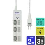 エルパ LEDランプ 個別スイッチ付タップ 耐雷サージ機能付 3個口 2m ホワイト WBS-LU302B(W) /ELPA 朝日電器