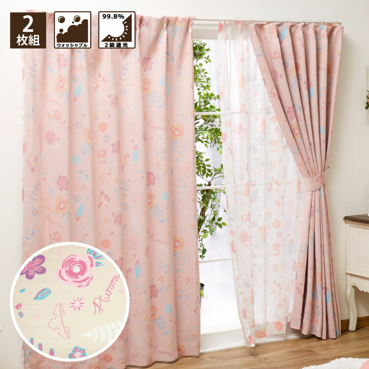 プリンセス 遮光カーテン 2級遮光 2枚組 幅100cm 丈135cm 丈178cm 丈200cm ウォッシャブル 形状記憶 丸洗い Disney ディズニー(代引不可)【送料無料】